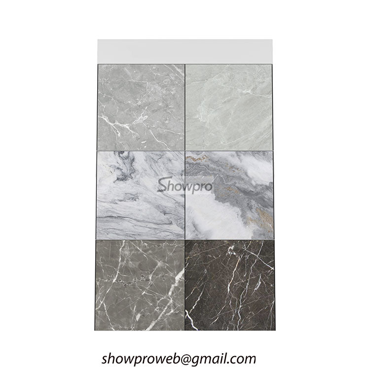 Space-saving 360-degree rotating tile rack for small retail showrooms