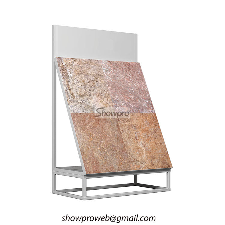 Showcase thick outdoor pavers safely with our heavy-duty steel display racks. Rust-resistant, high-capacity, and space-saving.