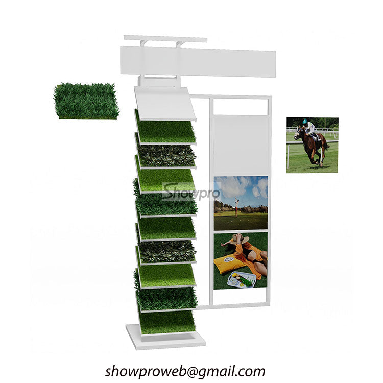 Heavy-duty retail grass display racks designed for trade shows — organize samples, speed setup, and create an attention-grabbing turf showcase.